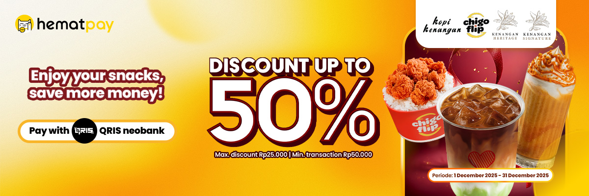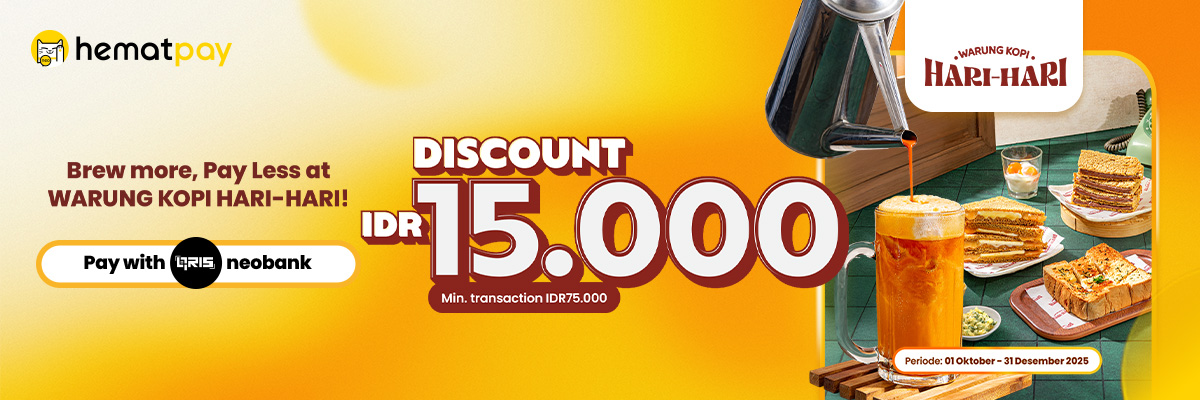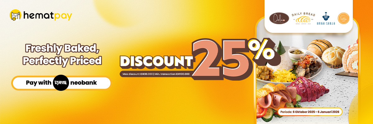Nikmati potongan harga, diskon 10%, 15%, 20%, hingga 50% dari berbagai merchant, dan tambahan diskon khusus pengguna baru jika menggunakan pembayaran QRIS neobank.
