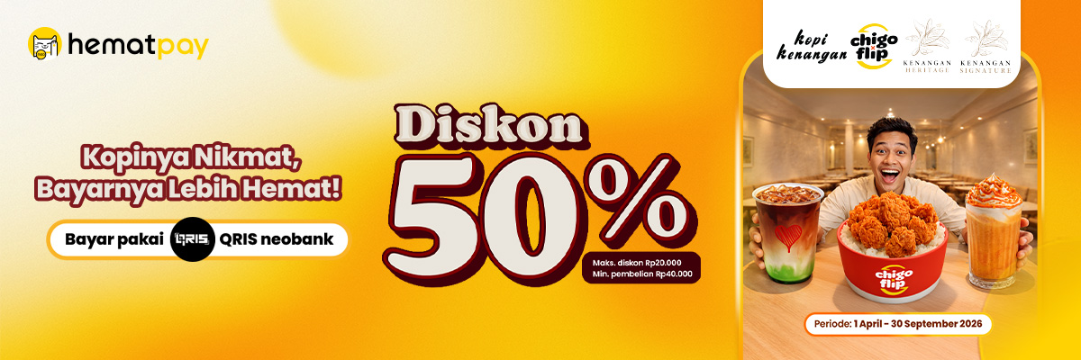 Nikmati potongan harga, diskon 10%, 15%, 20%, hingga 50% dari berbagai merchant, dan tambahan diskon khusus pengguna baru jika menggunakan pembayaran QRIS neobank.