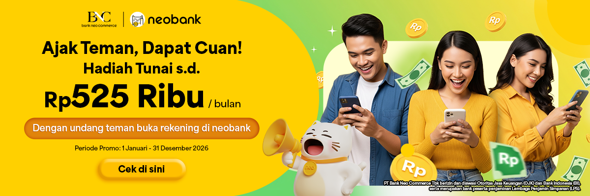 - Program ini berlaku untuk seluruh nasabah neobank yang berhasil mengundang teman ke neobank menggunakan kode referral.